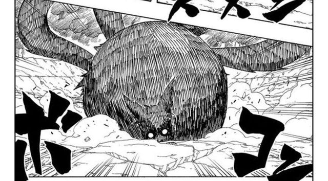 鸣人将那股能量球直接吞没,接着整个身体完全膨胀了起来。