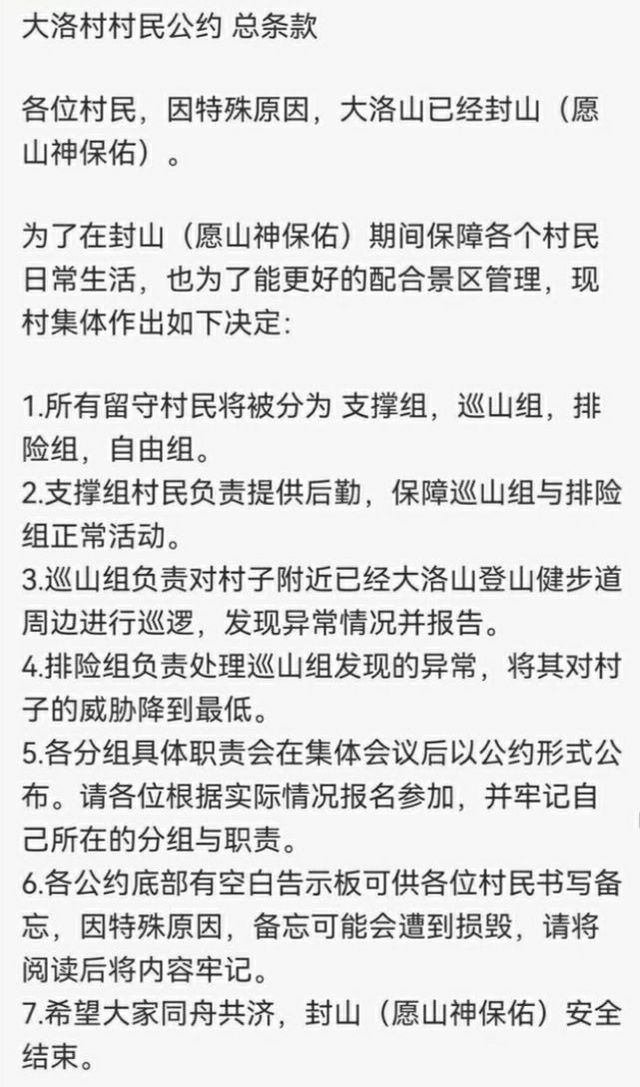 “封山了?那就说明大洛山登山健步道对村民们来说是有威胁的,应该是和景区不一个阵营的。”